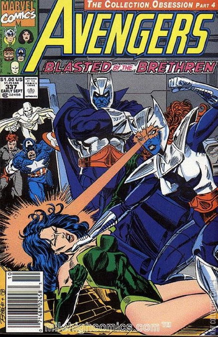 "The Collection Obsession Part 4 - Mud and Glory?" As Hank Pym continues to monitor his teammates, Black Panther Beast, and Quasar, who are continuing to search through the Collector's mini-ecosystems. The small team is accompanied by the Collector and a tribe member they met in another ecosystem, named Nakka, as the Avengers travel between the worlds seeing the destruction left by the Brethren. Meanwhile on Earth the Avengers accept Crystal as a provisional member of the team, and hopefully find a way to save Sersi. Sersi, still a captive of the Brethren is, but is given scrolls containing the history of the their race. Second in command of the Brethren, Sybyl Dorn takes offense to Sesi's reading of the scrolls, and to the affection shown by Thane Ector, so she attacks Sersi. Thane Ector stops the fight, and then proceeds to tell SErsi of the true history of the Brethren. Back aboard the Collector's Ship, the heroes finally find the Brethren's home world, which for some unknown reason kills their new friend Nakka.