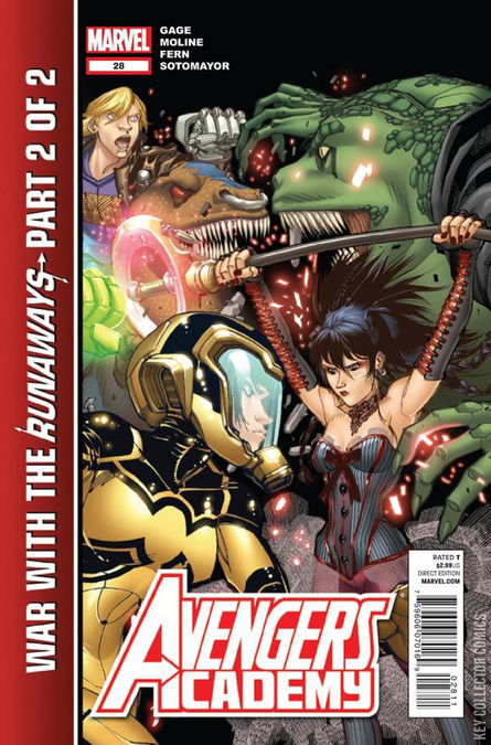WAR WITH THE RUNWAYS: HOMECOMING, PART 2 Guest-starring the Runaways! Romantic sparks fly between an Academy student and a Runaway! But between who? Jurassic fans rejoice, as Devil Dinosaur makes an appearance. And the return of old Lace! ? Plus: Will Nico, Chase, Victor, Klara, Karolina and Molly finally stop running and join the school?