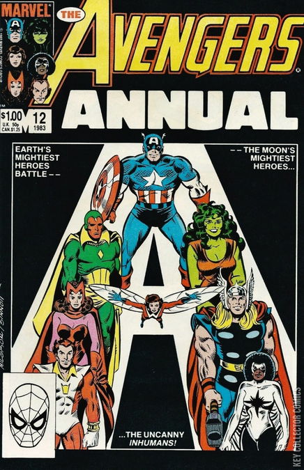 MOONRISE The Avengers are called before the Security Council of the UN, where the Fantastic Four are on trial. Mr. Fantastic describes to the assembly the history of the Inhumans. As the FF never informed the UN of the Inhumans' existence before, the Avengers have been called in as a neutral party to go on a fact-finding mission to the moon and if possible, to procure a peace treaty of some kind. After a quick trip in the space Quinjet, they meet the Royal Family of Attilan and pay their respects at the crypt of Maximus the Mad. She-Hulk agrees to prepare a brief for the UN that will defend the Inhumans' right to inhabit the moon. A celebration follows, with dancing. Captain America later rouses the Avengers in the night: Earth is under attack by meteorites sent from the moon-based forces! Thor is quick to stop the meteors with his hammer. Black Bolt orders that the Avengers be executed. The Inhumans then battle the Avengers. She-Hulk accosts "fork face" Black Bolt and demands that he talk (forgetting that if he does, it'll kill them all). As he shouts "Unhand me, savage!" Black Bolt is revealed to be Maximus! Vision and Karnak open the crypt so the real Bolt can exchange minds with Maximus. It is confirmed that peace is still ever the goal of the Inhumans.