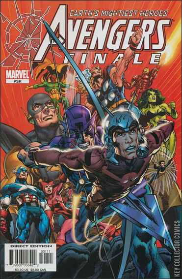 AVENGERS DISASSEMBLED EPILOGUE! The Avengers have gathered in the ruins of Avengers Mansion, to lament their loss. Even worse, Iron Man says that he can no longer financially fund their operations, due to the massive amount of damages caused by the Scarlet Witch and their rejection from the U.N. However, their mansion will become a historical landmark. The Avengers then begin to reminisce of the greatest parts of adventures, which include the founding of the team, the rediscovery of Captain America, the Kree-Skrull War, the marriage of the Vision and the Scarlet Witch, the fight against Korvac, the Masters of Evil, and the Ultron Unlimited crisis. They then hold a toast to their fallen comrades. As the Avengers walk onto the mansion balcony, they see countless people holding a candlelight vigil, to honor the Avengers for all they've done over the years.