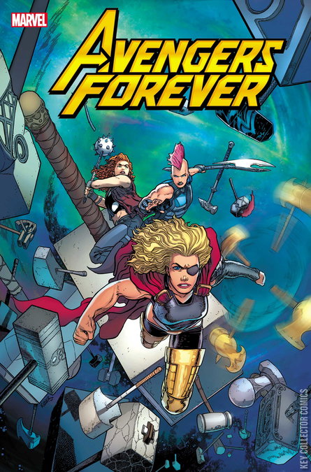 THE FOREVER STORM THE RETURN OF THE GODDESSES OF THUNDER! Atli, Ellisiv and Frigg are the granddaughters of Old King Thor, last seen during the end of Jason Aaron’s landmark THOR run. Now the Goddesses of Thunder are back, sailing the wild cosmic seas, chasing the thunder that echoes across universes…and hunting for fallen hammers.
