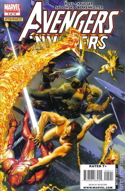 The second act of the hit maxi-series begins as our three teams -- the Avengers vs. the Avengers vs the Invaders - face off in an all-out battle aboard the S.H.I.E.L.D. Helicarrier! While battle rages, Dr. Strange attempts to solve the mystery of what ripped the greatest Heroes Of World War II to the present day, and how to put them back. Will the combined might of three super-teams be enough to stop the cross-time devastation? Match all of this with the return of one of the Avengers deadliest villains -- one with a particular interest in the Original Human Torch -- and you know, from what you've seen so far, the return of Captain America is only the tip of the iceberg!