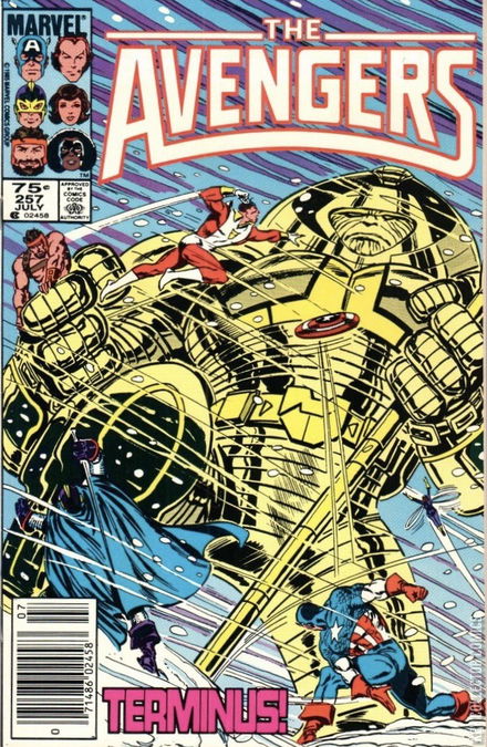 "Holocaust in a Hidden Land!" In deep space, Captain Marvel is introduced to Nebula, the merciless mistress of her abductors. Back on Earth, meanwhile, the Avengers follow Terminus into the Savage Land, where they meet Ka-Zar and Zabu, the only survivors of the research group's deadly encounter with the alien. Ka-Zar's wife Shanna is rescued by Starfox, as Terminus, blasting through a plateau, enters the larger jungle region of Pangea and commences to devastate it. The Avengers pursue their quarry, but he easily sweeps their quinjet from the skies, even as the jungle, its artificial environment wrecked, begins to revert to the normal Antarctic climate. When the Black Knight severs the creature's hand with his sword, Terminus is revealed as a robot exoskeleton. Starfox then hurls Hercules at their foe, and the Olympian rips through Terminus's armor, exposing the helpless, hopelessly obese creature within.