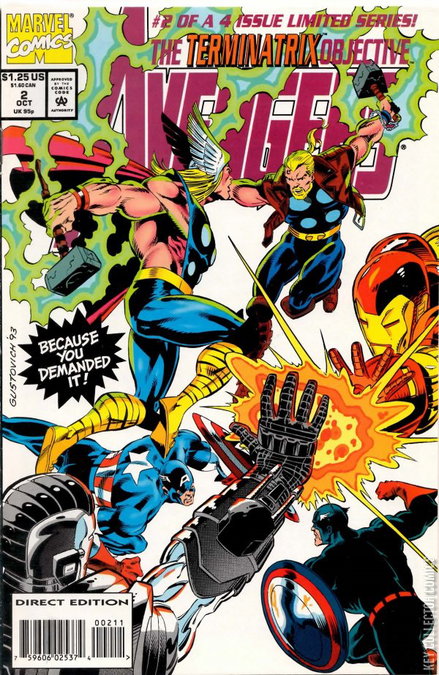 In the timeless city of Chronopolis, the battle is joined between Terminatrix’s avengers and Revelation’s avengers! The shield-slinger, golden avenger, and thunder god clash with the three men that at one time or another assumed their identities! And as expected they eventually reach a stalemate and begin searching for their true enemy! However during the fracas, Terminatrix leaps far into the future (beyond Kang’s eight millennia empire) and encounters Marcus Immortus! The new Mistress of Time keeps getting further into trouble! Will she turn back to the Avengers for help?