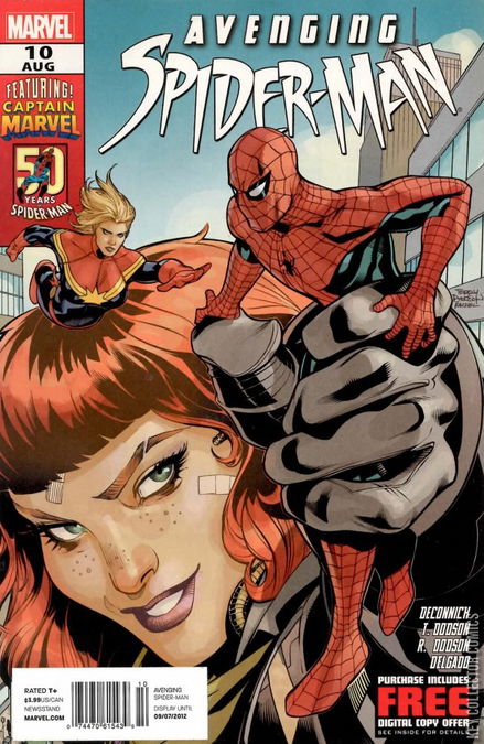 BOSTON! Prepare to have your sox knocked off! A 50-ft tall red-headed madwoman versus anarmy of privatized mecha-police! Care to guess who's caught in between? Spider-Man and Daring Damsel Carol Danvers, the new Captain Marvel!