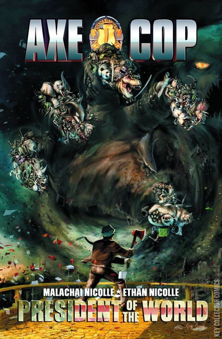 Axe Cop is back and mightier than ever! Under attack by evil robots and a mad scientist from Mars, and facing the newest menace Every Man, all the good guys have left Earth. Axe Cop must defend the planet and rescue his friends, even if he might have to do it all by himself. Written by eight-year-old Malachai Nicolle and drawn by big brother Ethan Nicolle, the imaginative adventures of Axe Cop have taken the world by storm!