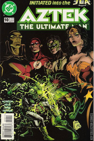 Broken and beaten from the recent encounters with the Lizard King and the Joker, Aztek is forced to return to the place where he was raised and trained--the secret base of the Brotherhood of Quetzalcoatl. There he encounters Raptor, the woman chosen by the Brotherhood to be his mate!The issue begins with an Earth conquered. Batman has been shot in the head, Flash’s legs have been ripped off, Parademons are roasting the remains of Martian Manhunter, and Superman has been crucified with a kryptonite pendant around his neck. In the middle of this stands Aztek and Darkseid, with Darkseid asking Aztek what he’s going to do about it. When Aztek gives his tactical analysis, we realize this is a test, as Green Lantern confirms. This test is for Aztek joining the JLA.Back at St. Bartholomew’s Hospital, the staff deal with an unusual cardiac arrest: the supposedly immortal Professor Ivo has had a heart attack in his cell. While the surgery team preps, Aztek (as Dr. Curt Falconer) and hospital supervisor Julia Frostick go over cases. Forstick suggests that more supervillains will be coming to Vanity now that he is here, and Aztek points out the additional Q Foundation guards he has been assigned.On the moon, the Justice League meets in their Watchtower to go over applicants. Their analysis is interrupted by Amazo, who traps the League in a Green Lantern energy bubble. Amazo has business with Professor Ivo, and he does not want the rest of the League to interfere.Amazo crashes in through the wall of St. Barts, and Aztek springs into action. Aztek, however, is just barely able to keep up with Amazo’s use of the Flash’s super-speed. Amazo manhandles Aztek, using Martian Manhunter’s superhuman strength, and Black Canary’s canary cry to keep him on the ropes. Aztek, however, gets a good blast in with his armor’s energy gauntlets, doing some damage to Amazo’s head.Meanwhile, the Justice League breaks out of Amazo’s prison. Since Amazo’s ring is based on Hal Jordan’s...