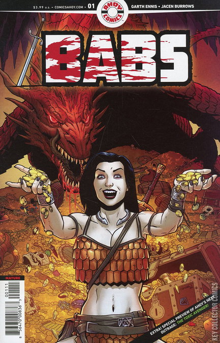 From legendary writer Garth Ennis (The Boys, Preacher) and superstar artist Jacen Burrows (Crossed, The Punisher): Meet BABS, a barbarian thief with an itchy metal wardrobe and the world's worst enchanted sword (named Barry). Together they travel a fantastic landscape of wizards, dragons, demons, castles—and a band of very angry, very white knights. Babs wasn’t looking for a fight, but she’s never found a bad situation she couldn’t make 100 times worse! Featuring variant covers by Chris Burnham (Batman Inc.) and Amanda Conner (Harley Quinn).