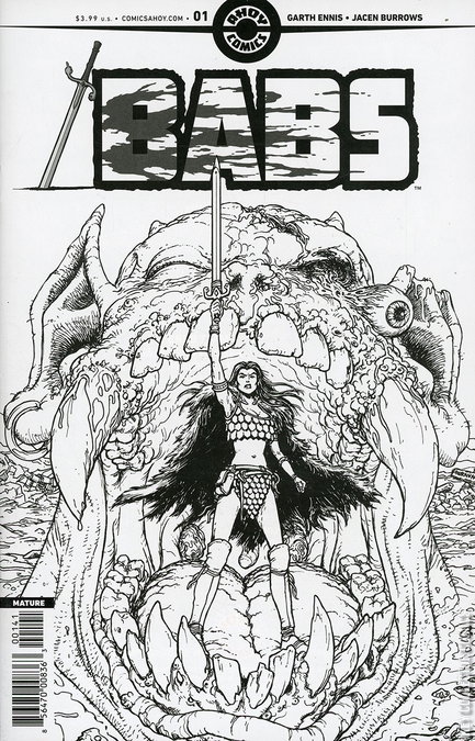From legendary writer Garth Ennis (The Boys, Preacher) and superstar artist Jacen Burrows (Crossed, The Punisher): Meet BABS, a barbarian thief with an itchy metal wardrobe and the world's worst enchanted sword (named Barry). Together they travel a fantastic landscape of wizards, dragons, demons, castles—and a band of very angry, very white knights. Babs wasn’t looking for a fight, but she’s never found a bad situation she couldn’t make 100 times worse! Featuring variant covers by Chris Burnham (Batman Inc.) and Amanda Conner (Harley Quinn).