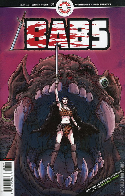 From legendary writer Garth Ennis (The Boys, Preacher) and superstar artist Jacen Burrows (Crossed, The Punisher): Meet BABS, a barbarian thief with an itchy metal wardrobe and the world's worst enchanted sword (named Barry). Together they travel a fantastic landscape of wizards, dragons, demons, castles—and a band of very angry, very white knights. Babs wasn’t looking for a fight, but she’s never found a bad situation she couldn’t make 100 times worse! Featuring variant covers by Chris Burnham (Batman Inc.) and Amanda Conner (Harley Quinn).