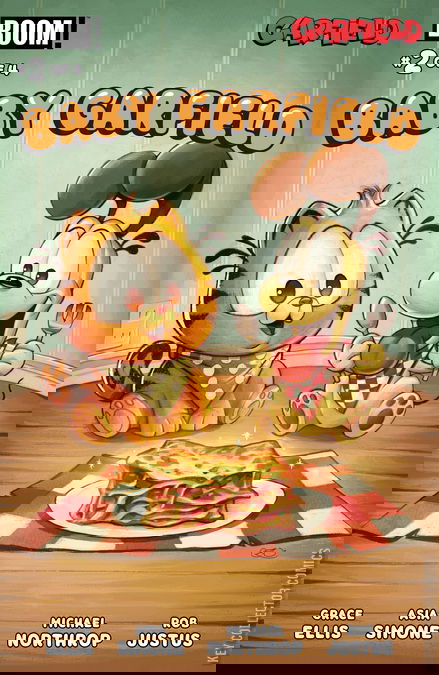 Two new baby Garfield adventures? No, we’re not kitten you!Join baby Garfield as he gets up to more silly hijinks in this paw-sitively delightful second issue!Mondays? More like No-Fun-Days! Learn why Garfield has an enduring animosity toward this particular day of the week and witness some kitty chaos in “Baby Garfield’s First Monday” by writer Stephanie Cooke (Oh My Gods!, The Racc Pack) and artist Whitney Gardner (The Racc Pack, Free Piano).Then follow the mouth-watering scents of roasted tomato, oregano, and cheese, and pull up a seat at the table to experience Garfield’s first heavenly encounter with a delicious Italian dish in “Baby Garfield’s First Lasagna” by creator Brittney Williams (Mixed-Up, Girl on Fire, Goldie Vance).