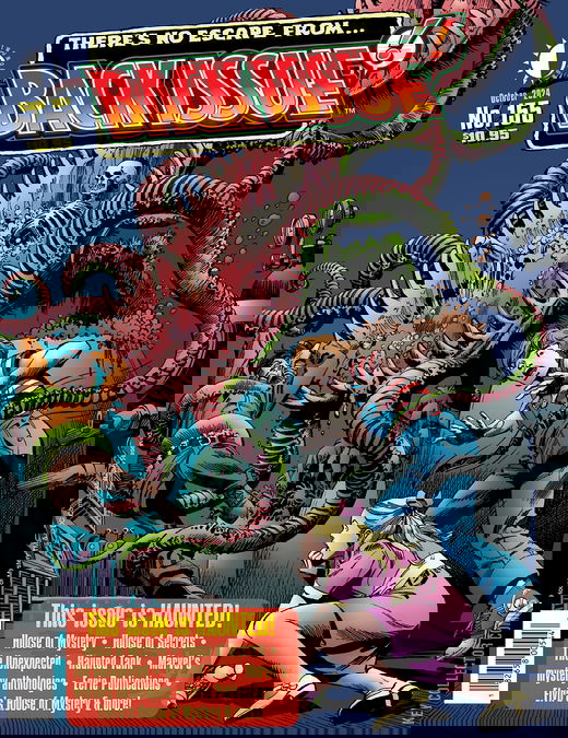 This issue is Haunted! Revisit the Bronze Age’s House of Mystery, House of Secrets, Unexpected, Marvel’s failed horror anthologies, Haunted Tank, Eerie Publications, House II adaptation, Elvira’s House of Mystery, & more. Chills and thrills courtesy of Neal Adams, Mike W. Barr, Dick Giordano, Sam Glanzman, Robert Kanigher, Ralph Macchio, Howard Mackie, Joe Orlando, Steranko, Bernie Wrightson, & more. Featuring a previously unpublished alternate version of the House of Mystery #251 cover by José Luis García-López and Wrightson.