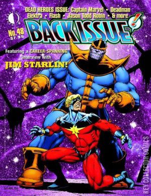 Back Issue resurrects 'Dead Heroes'! The man behind the Death of Captain Marvel graphic novel, Jim Starlin, discusses his remarkable career in a lavishly-illustrated exclusive interview. Also, Deadman after Neal Adams, the Jason Todd Robin, the death and resurrection of The Flash and Elektra, and the many deaths of Aunt May!