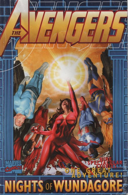 NIGHTS OF WUNDAGORE They are Earth’s mightiest heroes, united to fight the foes no single super hero could withstand! Now, two of their number— the mutant Quicksilver and his sister the Scarlet Witch— find themselves mysteriously drawn to the remote wilds of Wundagore Mountain. Within the rocky depths of the desolate, wind-whipped peak lurks a deadly evil — a tremendous, mystical force that seeks to bend all of nature to it’s terrible will! But the demon Chthon has yet to reckon with the awesome power of the Avengers! Contains material from Avengers Vol. 1 #181 through 189.
