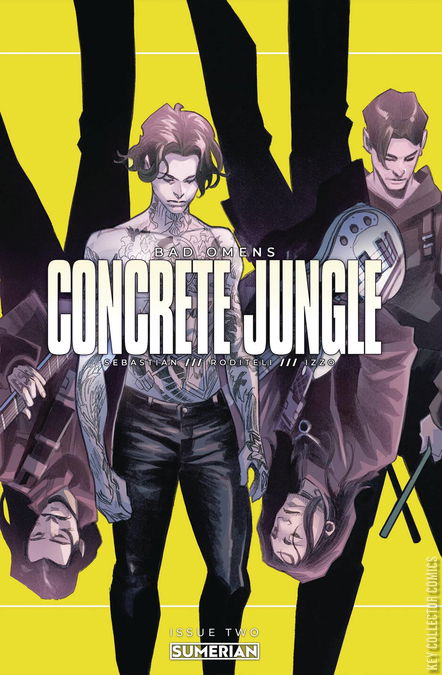 Cover by Simone Raggazoni with numerous credits from BOOM! Studios, IMAGE Comics, Titan Comics, and more. From the mega-viral and chart-topping band known as Bad Omens, comes this comic series based on their newest record, The Death of Peace of Mind. Bad Omens is one of many crime syndicates that operate in the largest district of the lawless and predominantly self governed Concrete Jungle. Their members toe-the-line morally so to speak when it comes to their revolving door of methods and motives, but in the end could be the anti heroes the city needs, and the true kings of the concrete jungle. ARTIFICIAL SUICIDE: Bad Omens has met their match while attempting to expand their reach into a new district. After a narrow escape at The Grey Museum, the four members are going to find something much larger awaiting their arrival on the streets of the Concrete Jungle.