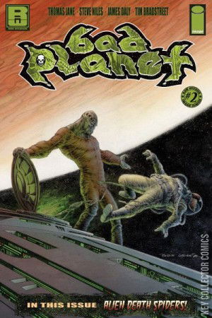 BAD PLANET IS BACK!! Raw Studios and Image Comics bring you a terrifying epic of alien invasion. Acclaimed horror writer STEVE NILES (30 Days of Night, Criminal Macabre) and fan-favorite actor THOMAS JANE (The Punisher, The Mist) combine forces with a stable of comics' most talented artists to take readers to BAD PLANET. A must-have for any sci-fi/horror fan, Issue #2 boasts an already-classic sci-fi cover by master Bernie Wrightson! Imprisoned since his own planet was mysteriously destroyed by alien beasts, the PHAEDON WARRIOR escapes his captors and lands here on Earth in Issue Two of BAD PLANET!