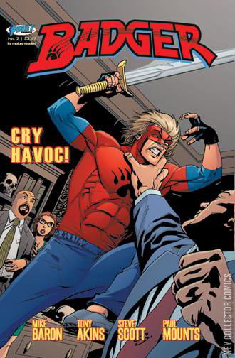 Norbert Sykes (alias Badger) gets sprung from the asylum thanks to the influence of his new best friend, Hamilton Thorndyke, a 4th Century Druid wizard. The housewarming at Ham’s new castle is spoiled by a Russian invasion. It seems the world’s balance of power is shifting and Ham has a deadly new rival, Vladimir Putin! Good thing Ham has a trusty and no less deadly guard-dog, The Badger! Standard cover by Stephen B. Scott! Pulse-pounding Retailer Incentive Variant wraparound cover by Tony Akins!