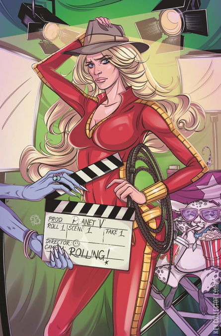 With her ship blown to pieces and the entire galaxy watching, Barbarella, Vix, and their unlikely new ally frantically search for a way off the perilous Planet V. But now that she's the unwitting star of her own show, the deranged programming Director won't let her go without a fight. Meanwhile, an old ally returns with a matter of grave concern. From Blake Northcott (Vampirella, Catwoman, Heavy Metal Magazine) and Anna Morozova (Judge Dredd, 2000AD). Get your popcorn ready, because it's gonna be a hell of a show! ALL COVERS CARDSTOCK