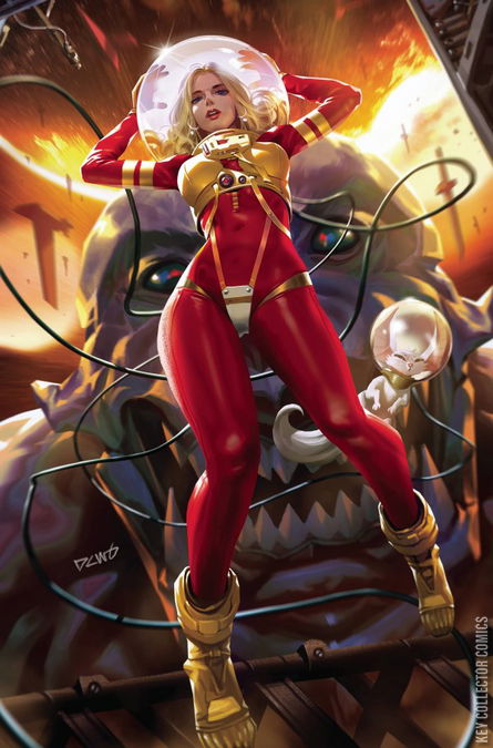 In hot pursuit of The Lady, Barbarella trashes yet another ship with nothing to show for it. Actually, things are worse than that-Taln is missing, Barbs finds herself caged... and on display in a zoo. Please don't feed the animals! The danger lies not in who caged her, but what lies beyond the walls of this alien menagerie. Let's just say they are very, very big.