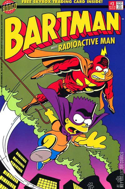 To save Springfield -- and himself -- from the clutches of the alien invaders, Bartman turns to the one superhero who can help him: Radioactive Man! But can even the mighty Irradiated Crusader tip the scales of justice in Bartman's favor? Find out in the dramatic conclusion of "When Bongos Collide!"