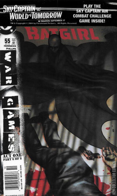 WAR GAMES ACT 1 PART 6 - TOTAL WAR Batgirl saves a four-year-old boy from a mob hit, alerting Oracle to the fact that innocents have now become targets in the gang war which is sweeping the city. They then get word that a number of children are being held hostage at Louis E. Grieve Memorial High, Tim Drake's school. On the way there, Batgirl encounters Spoiler, who is out on the streets doing her best to help. She tells the younger hero to stay off the streets and makes her way to the school, hitching a ride from a television news helicopter. Once there, she and all the bystanders hear a single gunshot.