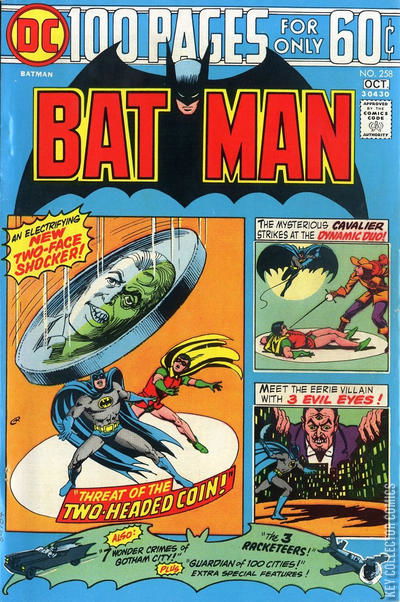 Batman faces the Threat of the Two-headed Coin! The Three Racketeers! The 7 Wonder Crimes of Gotham City! Twenty-Ton Robbery! The Guardian of 100 Cities! And the Man with a Thousand Eyes!