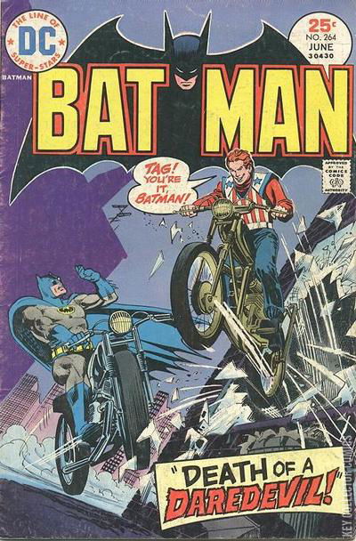 DEATH OF A DAREDEVIL Batman witness the abduction of Al Dayre, a true "Daredevil" perfomer and he investigates his mysterious disappearance. Learning that the responsible for Dayre's abduction is a wealthy man who wants to prevent Dayre from performing on his next stunt, Batman decides to take Dayre's place in the event and later he goes looking for the man. Eventually, Batman learns that Dayre and the kidnapper are in cahoots and that they planned the "kidnapping" since the beginning in order to cash in some ransom money. Batman captures them and finally learns that Dayre didn't make the stunt, despite knowing that it would give him much more money than the ransom, because he was afraid.