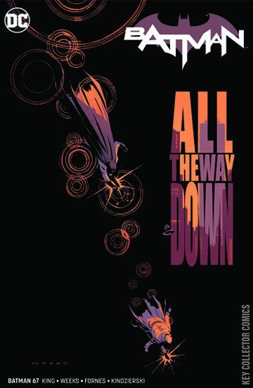 KNIGHTMARES, PART 5: ALL THE WAY DOWN Batman chases a new foe in an impossible race. Over rooftops, across alleyways, up and down the streets of Gotham City, this lightning-fast crook outsmarts the Dark Knight at every turn. Is that because the man under the mask is someone more familiar than he knows?