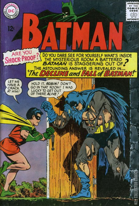 THE DECLINE AND FALL OF BATMAN! While getting his picture taken outside of a haunted house, Dick Grayson is shocked to find Robin in the background of the photo when it's developed. With the help of Batman they stumble upon a mystery in which duplicates of themselves that can become intangible at will are helping crooks commit robberies. After a few failed attempts at stopping these doppelgängers, Batman and Robin find a chemical that allow them to destroy the duplicates and stop the man responsible: criminal Eddie Repp who has built a special device that allowed him to create the duplicates.