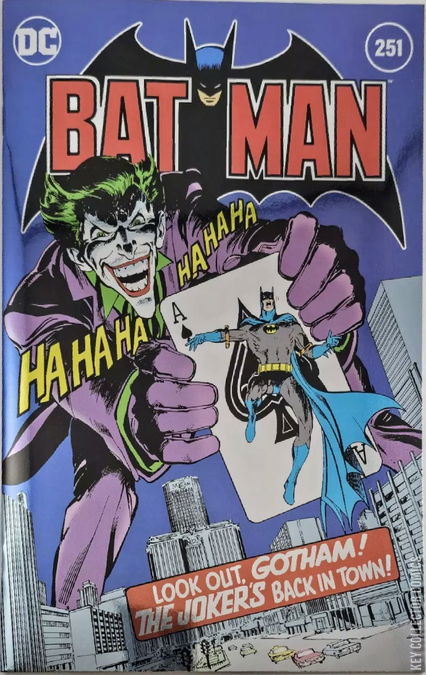 THE JOKER'S FIVE-WAY REVENGE! The Joker has set himself free from the Mental Hospital for the Criminally Insane Batman had him incarcerated in, and he is out for blood. Before he was sent away, knowing that one member of his previous gang had ratted him out to the police, he had vowed to murder all five of them; And only the Batman is capable of stopping him. Despite Batman's best efforts, the Joker is able to finish off nearly all of his hit list. Batman is only alerted after the first murder, when a grinning corpse is found in the mud just outside of Gotham City, and he goes to each of the former members of the Joker's gang individually to try to protect them.� The second member agrees to go into protective custody with Batman, but drinks from his water bucket right afterwards and is killed by Joker Venom it had been laced with. The third member is treated favorably by the Joker, and even believes the two of them to be on good terms when the Joker gives him a cigar before leaving his apartment. As the Joker walks out of the building, the cigar blows up the man's entire household.� Most interestingly, the fourth member of the gang believes Batman is only trying to bring him in for a mugging he recently committed, even after Batman tells him the story. He asks if Batman will lead the way because he's frightened, and then the second his back is turned bashes Batman over the head with a sap and runs back to his hideout. When Batman regains his composure enough to pursue, he finds the man already strung up by the neck, hanged from his rafters, and the Joker lying in ambush. Although the Joker is able to subdue the already disoriented Batman, he declines to kill him, because it was "mere chance that caused his attack on Batman to succeed," and he had "always envisioned his winning as a result of cunning at the end of a bitter struggle."� When Batman regains consciousness, he is able to deduce the location of the Joker's hideout by the strange mixture of sand and oil on his face where the Joker had kicked him. The Joker is hiding out in the aquarium right next to the beach, where there was very recently an oil spill. Batman tracks the Joker down, hoping to save the life of the last man, now a senior citizen confined to a wheelchair. Naturally, knowing Batman would find him, the Joker has the man poised over a giant tank of water with a shark inside, and agrees that he will let him go only if Batman takes his place. Batman is forced to agree, and after he is handcuffed, the Joker pushes both of them in. Thinking fast, Batman is actually able to subdue the shark using only his handcuffs, and to break the glass of the tank by bashing it with the wheelchair, saving the man's life and escaping in barely enough time to pursue the Joker. Batman runs out into the early dawn, and chases the Joker to his getaway car, but worries that in his current condition, after the lump on his head, the lack of air, and the night of running around Gotham; he won't be able to catch up to him in time. But the Joker slips on the oil slime of the beach right before reaching his escape, and Batman is able to catch up with him, and beat him silly.�� As Batman drags Joker off into the sunrise, the Dark Knight finds irony in the fact that pollution was the element that helped him capture his most dangerous rival.