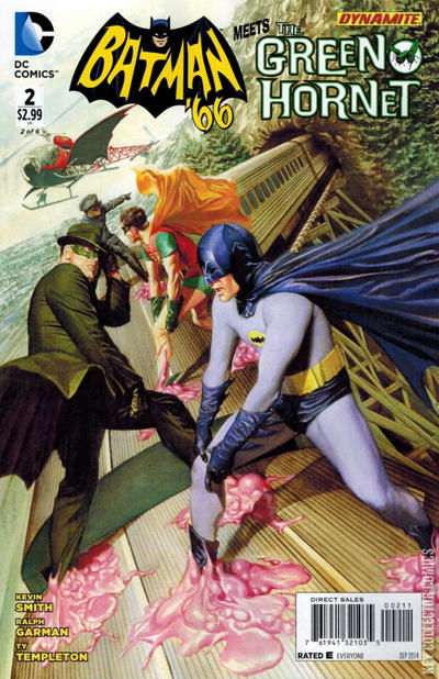ON THE WRONG TRACK Robin is preparing to go on a date with Bonnie Linseed, the mayor's niece and one of the most popular girls at Woodrow Roosevelt High. Bruce Wayne comments that she's an amateur palaeontologist, and would be interested in the collection of priceless fossils from the Gotham Museum of Natural History. In the study, Alfred takes a phone call from Commissioner Gordon asking Batman to watch over the shipment of priceless fossils, owned by Franco Bollo, which is being transported on board the Gotham Express. Dick is resigned to the fact he will have to call off his date with Bonnie, but Bruce assures him he can handle it himself. Bruce Wayne is the chairman of the museum's board and will not arouse suspicion by accompanying the exhibit. Bruce is aboard the train and is chatting to the explorer Franco Bollo when Britt Reid, publisher of the Daily Sentinel, and his valet, Kato enter the VIP car. Bruce and Britt decide to go to the refreshment car and discuss the exhibit. Britt comments that he would have expected to see Batman accompanying the exhibit on its journey especially as Britt has heard that criminal gangs from Sentinel are interested in the fossils. Suddenly the train grinds to a halt an yet Bruce notices that the breaks are not being applied. Bruce and Britt decide to investigate what his happening and they go to see the engineer. They discover that the train is at full power but yet is not moving so they leave the train, discovering that the tracks are covered in glue and cannot move. Britt and Bruce make excuses to split up. Bruce uses the "Two-Way Bat-cufflink Radios" to call Dick, who is in the diner with Bonnie and tells him to use the Bat-Copter to get to the train. Bruce enters the cargo car only to be greeted by Colonel Gumm. Whilst Bruce and Colonel Gumm are arguing over the fossils, The Green Hornet enters with Kato. The Green Hornet is upset that Colonel Gumm is trying to steal the fossils right under his nose. Colonel Gumm's henchmen and the Green Hornet start to fight just as Robin arrives in the batcopter with Batman's equipment. Colonel gum's henchmen have overpowered the Green Hornet and Kato , so the Colonel decides to retreat in "victory" only to be met by Batman and Robin on top of the train. Colonel Gumm turns to run, only to be stopped by the Green Hornet. Colonel Gumm tells the story of how he ended up with his white face. Just after his release from Gotham Penitentiary, he attempted to make the world's most powerful adhesive. unfortunately his concoction was too volatile causing it to explode and stick permanently to his face, turning him from Colonel Gumm to General Gumm. General Gumm pulls out a glue gun and shoots Batman, Robin, Green Hornet and Kato's feet, sticking them to the top of the train. The General then steals the fossils and unsticks the train causing it to move towards the tunnel with all four of them stuck to the top.