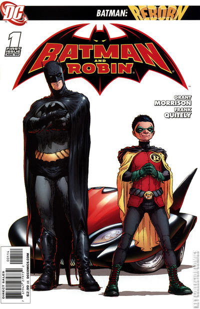 BATMAN REBORN, PART ONE: DOMINO EFFECT "Batman Reborn" begins here! With the reunited team of Grant Morrison and Frank Quitely ( ALL-STAR SUPERMAN , WE3 , New X-Men ), this first issue kicks off a 3-part story arc that can't be missed! The new Dynamic Duo hit the streets with a bang in their new flying Batmobile as they face off against an assemblage of villains called the Circus of Strange. They also tackle their first mission investigating a child who's been abducted by the mysterious Domino Killer. But will everything go smoothly? And who exactly are the new Batman and Robin?