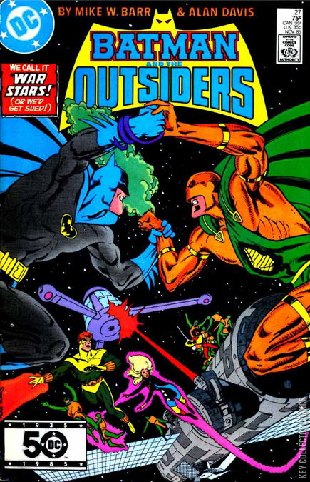 WAR STARS! Batman and the Outsiders attempt to stop Kobra, who has gained control of the Star Wars satellite and blackmails the Pentagon with selling its secrets to Russia. Going undercover, the Outsiders find the primary building used by the Kobra Cult, where they rescue Halo and her boyfriend, David Harrison. Batman instructs David to inform his father, who is a military general of the situation while the Outsiders stop Kobra. The Outsiders use Kobra's own spaceship to reach the satellite and in the final struggle, they come up victorious, destroying the satellite and forcing Kobra to retreat and give up their plans of domination. In the aftermath, Halo rejoins the Outsiders after coming to terms with her new humanity and elsewhere, Emily Briggs is about to become just what she always wanted.