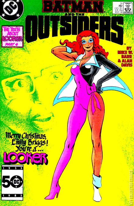 THE TRUTH ABOUT LOOKER PART 4 - PAWN OF THE WORLD BELOW! The Abyssian monarchs start the process to return Emily Briggs her past heritage and she is into a beautiful, psi-powered woman. Tamira pretends to use her to defeat her brother, Mardo and become the ruler of Abyssia, but Mardo takes control of Emily by saying the code word "Looker". Like this, Emily turns into her slave and obeys his every command, killing Tamira in the process. Mardo then pretends to make Looker his new queen and she uses her to draw Halley's Comet towards Earth in order to destroy the surface world. When the Outsiders, who have been captured, tried to stop them, they are helpless against the powerful Looker and her new abilities. Katana tries to make her remember her husband, Greg, but Mardo is confident that his control over Looker is so strong that she will never remember him. As a test, he removes her wedding ring, but this causes Emily's memory to return and she attacks Mardo, releasing the Outsiders and freeing some of them from the mind control. The Outsiders and Looker defeat the rebel Abyssians, returning peace to their kingdom. It is then that Emily learns that her transformation is permanent and she leaves the place along with the Outsiders, who return to Gotham City after a successful mission. Back home, Emily meets with her husband, who is truly glad to have her back, and more so with her new appearance.