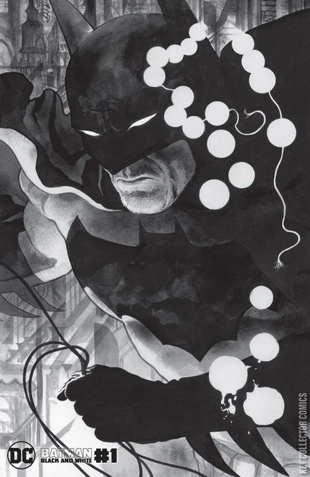 THE DEMON'S FIST / WEIGHT / METAMORPHOSIS / SISYPHUS / FIRST FLIGHT The iconic anthology series returns with a brand-new slate of comics’ most exciting and innovative storytellers to explore the Batman mythos in stark black-and-white! In this debut issue: James Tynion IV and Tradd Moore explore the world of Ra’s al Ghul and the League of Assassins. J.H. Williams III returns to DC Comics for a trip through the Dark Knight’s history. Emma Rios explores the eternal struggle of the Dark Knight. Paul Dini and Andy Kubert pit Batman against an infestation of ninja Man-Bats in the Batcave. G. Willow Wilson and Greg Smallwood portray Batman in his strangest standoff ever with Killer Croc. With a lineup this strong and a cover by legendary Batman artist Greg Capullo, you won’t want to miss the start of this tremendous collection of Batman tales by some of comics’ top creators!