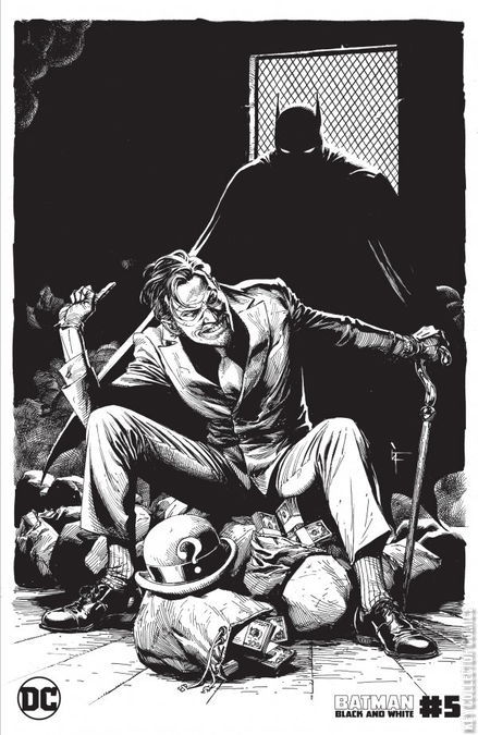 A FATHER & SON OUTING / SIGNALS / BLUE / THE RIDDLE / THE MAN WHO FLIES The penultimate issue of the acclaimed return to Batman Black & White is here with a look at some of Gotham City’s most twisted and compelling souls. Superstar Batman artist Jorge Jimenez writes and illustrates a story starring Bruce and Damian Wayne as they try to prepare for a sting operation as Batman and Robin, with Damian questioning Bruce’s methods every step of the way. Multiple Eisner Award-winning writer of Detective Comics Mariko Tamaki and fan-favorite artist Emanuela Luppachino show what’s become of Gilda Dent, former bride of Two-Face and current scourge of super- villains. Jamal Campbell , acclaimed co-creator of Naomi and Green Lantern Jo Mullein from Far Sector, tells a story that spans the full history of Nightwing. Kieron Gillen and Jamie McKelvie , the celebrated team behind Phonogram, Young Avengers, and The Wicked + the Devine, make their DC debut with a story that pits Batman against the Riddler in a way you’ve never seen before! And finally, legendary comics artist Lee Weeks writes and draws a story that has the ghosts of Jim Gordon’s past coming back to haunt him!