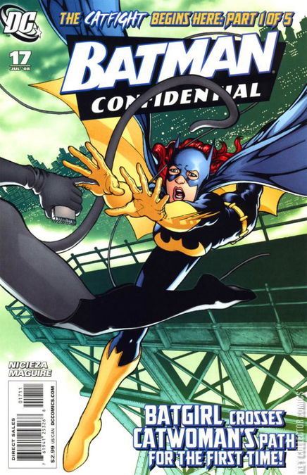 THE CAT AND THE BAT PART 1 Barbara Gordon is working at the Gotham City Public Library when she notices her father's notebook is gone. Batgirl quickly chases down the culprit, Catwoman. However, Catwoman is able to best her each time and flees into The Gotham City Hedonist Society. In order to enter, a determined Batgirl starts stripping her clothes.