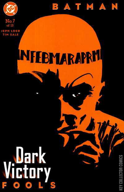 FOOLS The Special Task Force keeps their guns trained on Batman, demanding his surrender. Batman deploys a gas grenade, which disorients most of them, but Lopez keeps shooting even as her eyes water. As Batman leaves, Gordon orders his men to stand down. Batman is not the enemy, anyone with even the slightest grasp of the good that Batman has done for Gotham would know better than suspect him of being the Hangman. He directs them to help calm down some of the neighbors who were likely rattled by the gunfire, he has the unenviable task of telling Merkel's wife that she is now a widow. Two weeks later, Two-Face convenes a tribunal in his underground hideout. The Joker, Scarecrow, Mad Hatter, Riddler, Poison Ivy, and Mister Freeze are serving as jurors, with Solomun Grundy as the bailiff. Calendar Man is delivering his testimony, still wearing his prison uniform, but now featuring tattoos on his head. Two-Face tells them that the tribunal's purpose is to determine the identity of the Hangman. Since Calendar Man offered valuable insight into Holiday, Two-Face suspects he might offer similar insight into the Hangman. Calendar Man notes that all the evidence suggests that Dent himself is responsible for the murders. Two-Face insists that it is too obvious, someone is clearly trying to frame him. He asks Calendar Man who the Hangman will target next. Calendar Man tells Harvey that he should already know that information. He should hurry though, today is a holiday: April Fool's Day. At the Falcone Estate, Alberto is again contacted by the disembodied voice of his father, who directs him to the gun he used as Holiday. He quickly hides it as Sofia and Mr. Mirti return to the mansion. They have just returned from meeting Don Gazzo in Metropolis. Gazzo is going to have some words with Mario. Sofia demands to know where Alberto stands in her feud with Mario. Alberto simply tells her that she can do whatever she wants with Mario, he has his own plans. After a training session, Batman and Alfred go over more forensic data from the Hangman murders. Batman expresses his frustration at Porter keeping him out of the investigation, and suggests they investigate her. Alfred tells him to list the order of the Hangman's victims, and he gets it wrong. Alfred notes that Bruce has been behaving erratically since Christmas and the breakup with Selina. Batman finally remembers that he was poisoned by Scarecrow on Christmas. Alfred fetches his medical bag. Gordon is phoning Barbara from his office, when he notices someone has activated the Bat signal. When he goes out to investigate, he finds a rope around his neck. Batman arrives just in time to see Two-Face cutting him down. Two-Face insists that he is not the Hangman, someone is going to great lengths to set him up. Saving Gordon proves his innocence, but he will not help them any further. He adds that he has two snipers aimed at Gordon, and they will shoot unless they let him go. After Two-Face slips into the shadows, Batman wonders if Two-Face faked the hanging to throw suspicion off him. Gordon suggests that if it was the real Hangman, he would have left a note. Upon closer inspection, they find a police report involving Mario Falcone's deportation. Chief O'Hara was the arresting officer, and Harvey Dent was the prosecutor. At the Ace Trucking Company, Zucco notes that Skeevers has recovered nicely from the injuries he sustained last month, but Skeevers is more concerned about the war between the Falcones and the Arkham Asylum escapees, as it is starting to hurt their bottom line. Zucco assures him that he has found a new way to move merchandise, and if it works, it will make them both very rich.