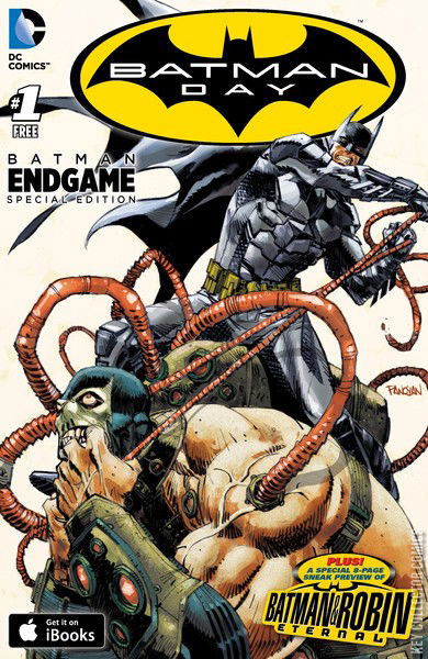 BATMAN: ENDGAME SPECIAL EDITION #1 is a 40-page comic that reprints the lead story from BATMAN #35, written by Scott Snyder, with art and cover by Greg Capullo and Danny Miki! In addition, this special issue features a brand-new eight page story that leads into BATMAN & ROBIN ETERNAL, the new weekly series set to begin in October! This story is by Scott Snyder and James Tynion IV, with a script by Tynion and art by Tony S. Daniel