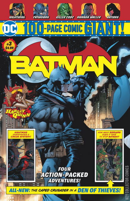 BATMAN UNIVERSE PART 1 The Riddler is at it again, but what Batman uncovers when he solves this particular crime puzzle sets off a whole new globe-spanning adventure! This brand-new Batman story comes from creative team Brian Michael Bendis and Nick Derrington! HUSH CHAPTER 3 - THE BEAST This story is reprinted from Batman #610 PAST AND PRESENT This story is reprinted from Nightwing (Volume 3) #3 LOVE STINKS! This story is reprinted from Harley Quinn (Volume 2) #3