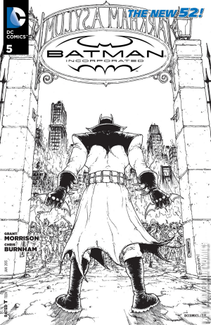 ASYLUM Talia al Ghul has demanded that Damian leave his father and go with her, and Batman seems to agree. Hurt and stung, Damian asks why. So Batman decides to tell the story of his near-death vision... The night in Gotham was suitably apocalyptic. The Joker Virus has engulfed the city, turning millions of citizens into grinning psychopaths. But Damian Wayne, Batman, is on the case, racing a baby with an apparent immunity through a nightmarish landscape to the one building in Gotham with enough security to keep a mad world at bay - Arkham Asylum. At the gate, Commissioner Barbara Gordon in a combat reinforced wheelchair shoots into the crowd, giving Batman the space he needs to get to safety. Later, in the infirmary, she and the detective discuss the situation, and Gordon apparently makes peace with him. Batman considers his life. How, upon the death of his father Bruce Wayne, he sold his soul to the immortal Simon Hurt, who claimed to be the Devil, to keep Gotham safe. But if he fails tonight, the American government will order a nuclear strike on Gotham to contain the virus. He goes to the cells and asks one of his enemies, the super-gorilla Jackanapes, to help him come up with a retrovirus based on the immunity. Jackanapes gloats, claiming it is the end of days, but when Batman becomes angry the villain tells the truth: the baby does not have an immunity. The baby is exhibiting no symptoms but is still carrying the virus inside the asylum. Batman runs, to find that the maddened Barbara Gordon has already killed the child. Batman and Jackanapes are the only people left in Gotham untouched by the virus. The crowd comes on, a million or more, and the last thing Batman sees is the explosion of the atomic bomb launched by a guilt-ridden American president - at the behest of his advisor, Simon Hurt. That was what Batman saw. All his efforts with Batman Inc were to save the world, but to save his son also.