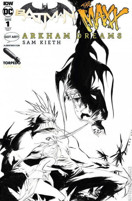When a devious new doctor at Arkham Asylum conducts unconventional forays into the human psyche, he kicks off a disastrous chain reaction by experimenting on Arkham’s newest patient: The Maxx!," reads IDW's description. "The city of Gotham soon begins to merge with the Outback, The Maxx’s psychedelic mental landscape. It’s up to Batman to save Gotham and all of reality… but only by joining The Maxx on a trip into the darkest depths imaginable: the twisted minds of Batman’s greatest enemies!