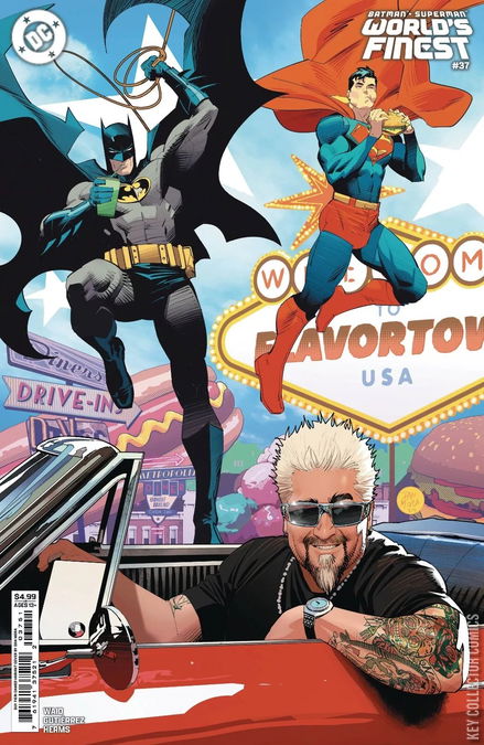 THE WAVES CRASH! Superman and Batman have a code against killing...but does a king of Atlantis? As the Floronic Man makes his final play for dominion over the seas, Aquaman is forced to react as a warrior, not a superhero--and the consequences will surprise you! Guest-starring Swamp Thing...and featuring a very special celebrity cameo variant from the mayor of Flavortown himself: Guy Fieri!