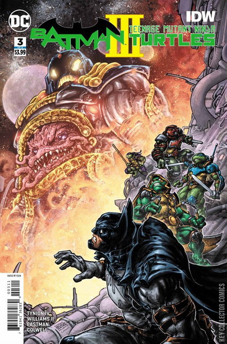 Crisis in a Half Shell , Part 3: The origin of Batman…together with the origin of the Teenage Mutant Ninja Turtles? The stories are familiar, but through the prism of this altered reality, clearly not the same. An uneasy feeling sets in that everything is not what it seems. But the Laughing Man pays a visit to a familiar Turtles ally to make sure this world stays exactly as Krang has remade it.