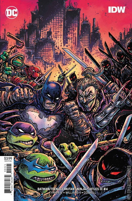 Crisis in a Half Shell, Part 4 Batman and the Turtles grapple with the laws of Krang’s combined universe, desperate to return their two worlds to their original states. But there are some who do not want things set right. In this reality, the Laughing Man runs the Smile Clan, the most dangerous criminal organization ever to strike New Gotham City—and that’s how he wants things to stay! He’ll kill anyone who gets in his way...even the Shredder!
