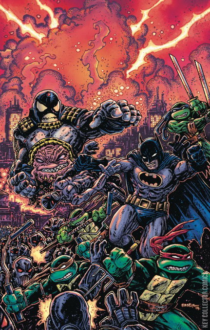 Crisis in a Half Shell, Part 6 Krang has steered his Ultra-technodrome into the skies above the new Earth he sought to conquer and rebuild in his own image. He thought the heroes of the worlds he’d conquered were down for the count, but now he faces two sets of Teenage Mutant Ninja Turtles, two Batmen and a whole host of angry heroes looking to save their worlds once and for all. If Krang can’t own the Multiverse, then he will destroy it!