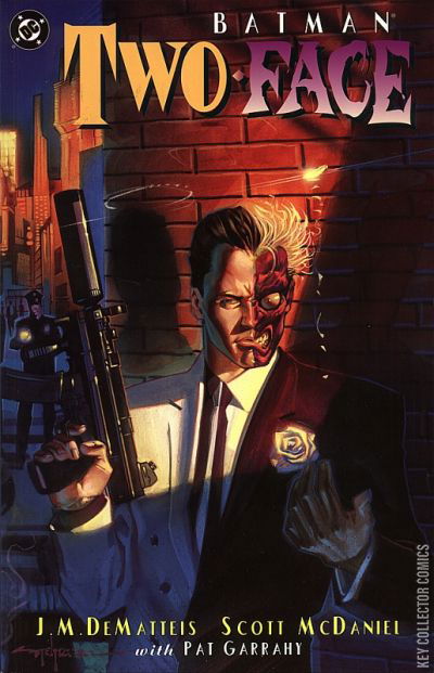 Two-Face: Crime and Punishment opens on a dark and stormy evening. Harvey Dent stands high above the city, prepared to jump to his death. Two-Face, his secondary personality, dares him, taunts him, teases that he's too much of a coward to take the plunge. Harvey flips his coin, letting chance decide his fate, and as it lands scarred side up, he leaps into the inky darkness of a Gotham night… It would seem that this is the end of the story, but it isn't. Immediately, we're slammed into a flashback. A look at Harvey Dent as a child with an abusive, alcoholic father whose inconsistent and violent behavior emotionally damaged his young son and started unraveling his sanity at an early age. Brought back to the present day, a similar child with a similar father and a similar outlook on life is being interviewed on a talk show. This is where the real story begins. Bursting into the studio, Two-Face takes the place hostage, angrily ranting on national television about the media spectacle surrounding the walking wounded. All the while, Harvey Dent, a passive observer of Two-Face's violent deeds, begs to be heard. Begs for mercy on behalf of the child. This encounter sets a tone for the rest of the book as Harvey Dent and Two-Face bitterly clash over the meaning of right and wrong, fair and unfair. As the story progresses, Harvey tracks down his long estranged father, the man who helped warp his mind and inadvertently set Two-Face on his path to villainy, and confronts him in front of all of Gotham, prepared to murder him before the eyes of millions on television. What follows is an emotionally potent one-two punch that forces the audience to sympathize with Harvey's plight and understand Two-Face's deepest motivations.