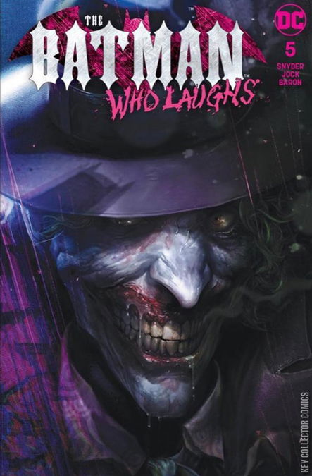 THE LAUGHING HOUSE, PART 5 It's a battle to the death as Batman goes head-to-head with the Grim Knight! The Caped Crusader is forced to not only fight off the most evil version of himself, but this growing desire to turn his back on his moral code and commit cold-blooded murder. Any other time, Batman would be able to stay on the straight and narrow, but as the Joker serum finally takes over his body, Bruce Wayne may just succumb to pure evil, and kill the Grim Knight. All of this is forseen by the Batman Who Laughs, who has been planning for the corruption of Bruce Wayne, banking on his activating the 'Last Laugh' protocol and turning Gotham City into an incubator for evil. All the Batman Who Laughs needs is one last 'Happy Bruce' from another dimension to make his serum work...but only Batman knows where the last Bruce is going to show up.