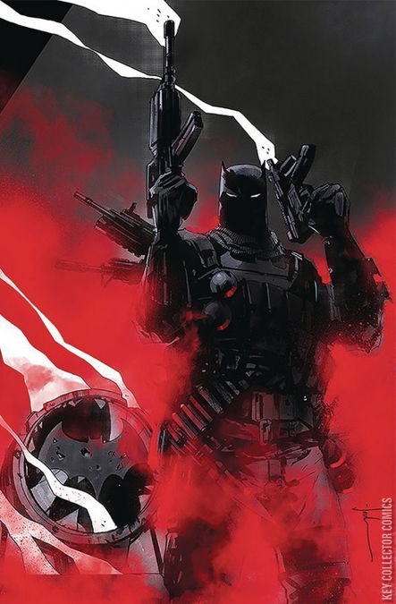 A GRIM KNIGHT IN GOTHAM Ripped from Batman’s greatest nightmares, the Grim Knight is his world’s most dangerous vigilante, unafraid to use any weapon and go to any lengths to stop those whom he deems worthy of death. Trained with the finest arsenal Wayne money can buy, learn the secret origin of the second-deadliest Batman, hand selected by the Batman Who Laughs to bring his dark plans to fruition.