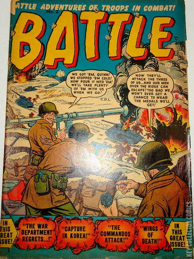 Home / Marvel / Battle / Battle #2 Marvel Released January 1951 Battle #2 Add to Collection Want It Synopsis No synopsis available. Issue 2 of 70 Add to Collection Buy it on eBay Buy on eBay Low $25 Mid $75 High $250 Synopsis No synopsis available. Details Series Battle Cover Date January 1951 Pages 36 UPC N/A Cover Price N/A Final Order Cutoff N/A Creators No creators listed. Price Guide Log in or subscribe to access detailed graded price information and market insights. Log In Subscribe